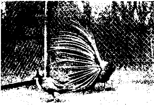 В этом ряду, на самом деле еще более сложном, имеется цепь безусловных рефлексов, вернее фаз единого полового рефлекса (инстинкта): фаза подачи голоса, фаза, приближения на голос другого пола своего вида, фаза токования при виде самки, фаза приседания при виде токования самца, фаза садки на присевшую самку и топтания ее (рис. 29), фаза ответа на топтание и т. д. В естественной обстановке вся эта цепь рефлексов необходима для получения coitus’a. Однако будет ошибкой думать, что вся эта цепь необходима всегда, и при желании заставить индюка дать сперму в первый раз необходимы все элементы индюшки — ее голос, ее вид, окраска, ее размеры, приседание и пр. Например, что будет делать индюк, если на его голос приблизится к нему не индюшка, а другая птица (случайно или по желанию экспериментатора)? В какой степени должна быть эта птица похожей на индюшку, чтобы вызвать токование? В чем она должна быть похожа”—в окраске, голосе, «манерах»? Каково будет поведение индюка, если мы заставим сесть перед ним другую птицу, и в какой степени и в каких элементах должно быть это сходство? и т. д. Каждый из этих вопросов требует анализа, и, проделав его, мы получим ответ, какие именно элементы необходимы и достаточны для приведения в действие инстинкта садки индюка.