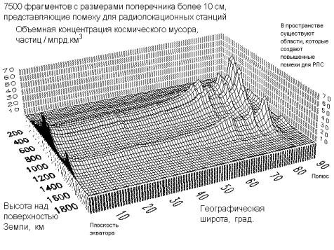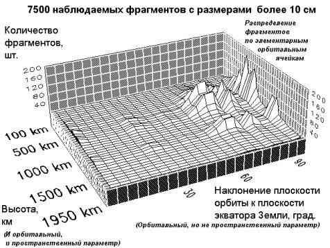 Рис. 2.2. Пространственное распределение орбитальных мусорных экскретов