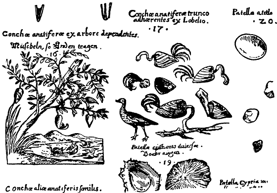 Не один Геснер попал впросак с подобной историей. Живший несколько позднее Геснера некий Дюре в 1605 году утверждал, что из плодов, упавших с дерева на землю, могут получиться птицы, а из тех же плодов в воде выведутся рыбы. Он даже дал рисунок, на котором весьма добросовестно изобразил постепенное превращение плодов в птиц и рыб.