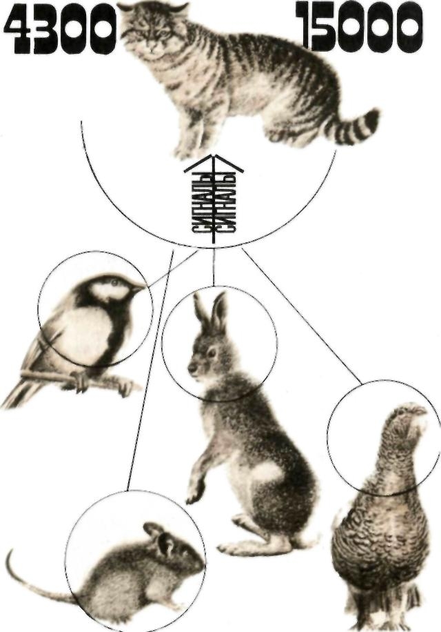 Природа снабдила различные классы животных определенными органами слуха. Однако в процессе эволюции в зависимости от специфики образа жизни в устройство этих органов вносились различные поправки. Ведь чем быстрее и точнее животное будет получать необходимые сведения, тем выше при прочих равных условиях его шансы в борьбе за существование. Сколько живут на Земле тигры, барсы и всякие другие кошки, столько они охотятся на разную живность — мелкую и крупную. И, конечно, благополучие этих хищников во многом зависит от того, как быстро они способны обнаружить добычу. Слух для них значит очень многое. Не секрет, что все кошки без исключения прекрасно слышат. Но что конкретно способствует этому? Когда стали изучать слуховые барабаны разных представителей кошачьих, выяснилось, что они имеют наиболее выгодную форму — форму шара, стенки их тонкие, а сами они разделены на две камеры. Подобные барабаны и расширяют границы наиболее остро воспринимаемого диапазона частот и усиливают чувствительность слуха к отдельным частотам за счет резонанса как во всей полости среднего уха, так и в каждой из камер. Но это то, что объединяет всех кошек, а дальше уже идут различия и вызваны они тем, на кого эти хищники охотятся. Тигр и барс нападают в основном на копытных, и слуховой барабан у них резонирует на частотах от 1300 до 4200 герц, т. е. уши их наиболее чувствительны к диапазону звуков, издаваемых жертвами. Лесной кот специализируется на мелких грызунах и птицах, поэтому резонансная частота его барабана гораздо выше — 4300 — 15 тысяч герц.