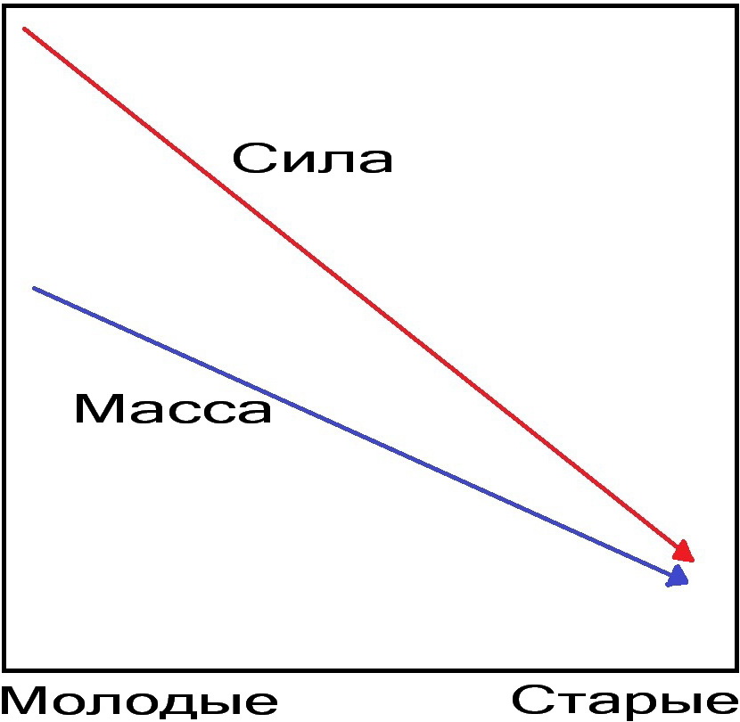 Когда мы стареем, мышечная масса и сила уменьшаются, но сила уменьшается быстрее.