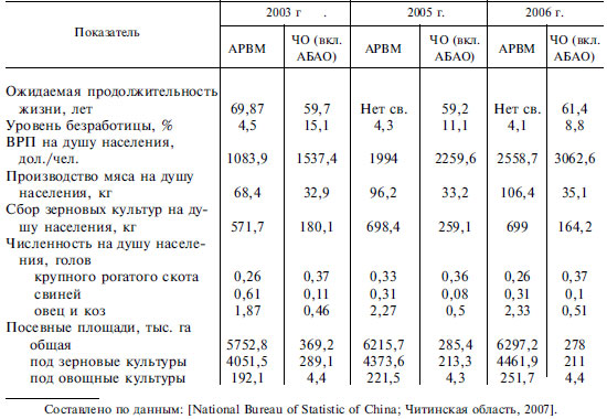 Таблица 11.7 Основные социально-экономические показатели развития автономного района Внутренняя Монголия и Забайкальского края в 2003–2006 гг.