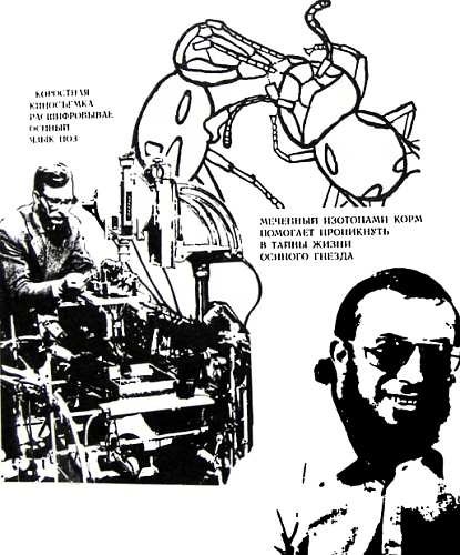 Для уточнения данных радиоактивность отдельных насекомых проверялась также в свинцовых трубочках, а радиоактивность отдельных частей тела в специальных блиндированных коробках. Опыты подтвердили: осы отличают чужой вид от своего, родных сестер от чужих своего же вида; радиоактивность сконцентрирована во внутренних органах…