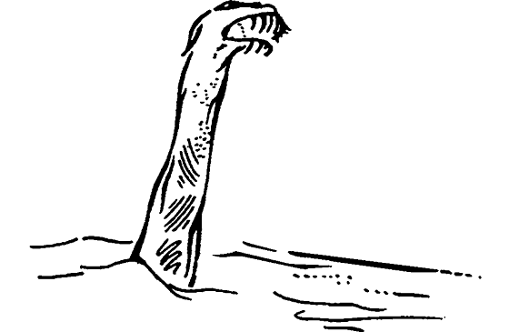 Дальнейшие расспросы показали, что он, как, впрочем, и многие другие члены команды, наблюдал некое крупное морское животное. «Оно было очень массивным, таким большим, как, например, судно водоизмещением 500 тонн, с очень длинной шеей и маленькой головой… Животное обладало поразительной резвостью».