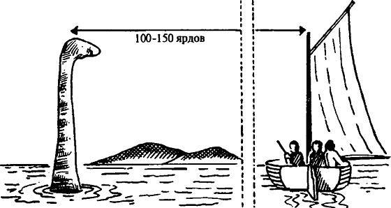 «Внезапно впереди, на расстоянии 100–200 ярдов[10], из воды вырос какой-то темный силуэт. Туловище было зеленовато-серое, с горбами. Через несколько мгновений появилось еще одно такое же туловище, но поменьше. Их было видно в течение примерно 10 секунд. Оба существа смотрели прямо на нас».