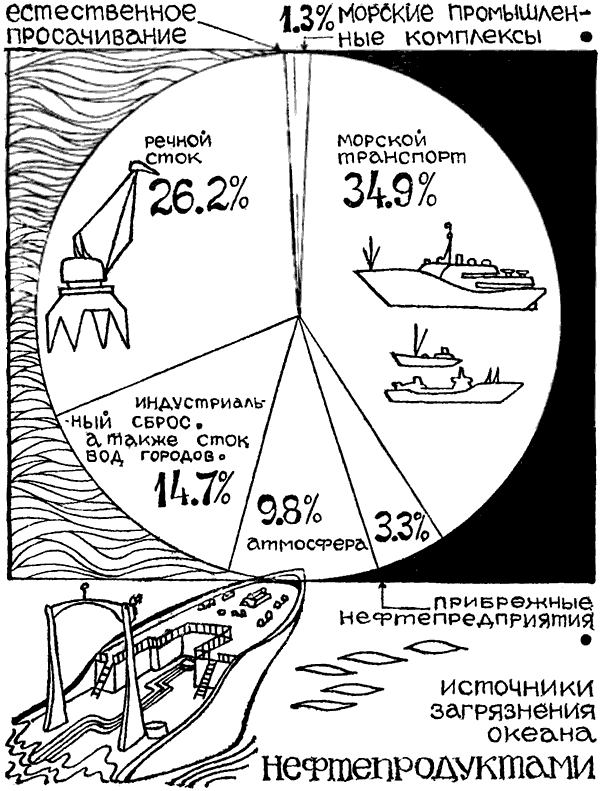 В связи с физико-химическими изменениями свойств нефти, а также в связи с биологическими процессами или изменениями свойств морской воды нефтепродукты могут всплывать на поверхность или опускаться на дно. Интересно, что если нефть попадет на дно и если она не будет погребена под плащом осадков, то может совершенно неожиданно всплыть на поверхность. Почему? Возможно, произошли физико-химические изменения нефти или ее окисление бактериями, в результате которых сгустки нефтепродуктов становятся легче. Могли измениться и характеристики среды, например температура воды. Ее повышение увеличивает растворимость нефти, сгустки «облегчаются» и также оказываются у поверхности.