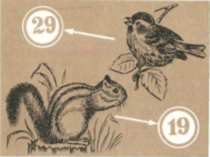 Среди рыб первое место по неразговорчивости занимают сельдь, верховка, хамса и плотва. У нашей прудовой лягушки шесть «слов»-криков. «Словарь» кекликов состоит из 19 сигналов, куры при разговоре пользуются 25 «словами», а цыплята — шестью. Еще больше сигналов издают птицы из отряда воробьиных. Обычно их подразделяют на несколько основных категорий: сигналы взлета, посадки, ухаживания, пищевые; у молодых птиц есть сигналы призыва, попрошайничества, опасности. Общее число таких категорий у птиц разное: у черного дрозда и обыкновенной овсянки их насчитывают 14, у серой славки — 25, большой синицы — 20. Каждая категория в свою очередь делится на другие, уточняющие передаваемую информацию. Чиж, благодаря оттенкам в «произношении» лишь одного сигнала «теттеретт», может сообщать своим товарищам отличающиеся друг от друга деталями четыре информации. Смысл их приблизительно таков:
