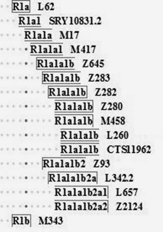 Посмотрим, как это выглядит на сокращенной диаграмме субкладов гаплогруппы R1a c добавлением R1b: