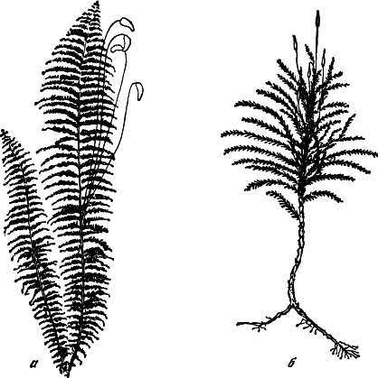 Рис. 25. Мхи птилиум (а) и климациум древовидный (б)