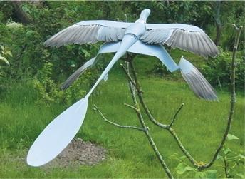 Эксперты поместили эту модель микрораптора в натуральную величину, снабженную подвижными ногами и настоящими перьями, в аэродинамическую трубу. Лучшие результаты получались, когда ноги были направлены вниз, а не в стороны, как на этом снимке