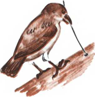 Удивительно поведение дятлового вьюрка с Галапагосских островов. Перелетая с дерева на дерево, он таскает с собой колючку кактуса или обломок веточки и выковыривает ими из трещин в коре насекомых и их личинки. Можно сказать, что в поведении вьюрка нет никаких разумных действий, просто цепь безусловных рефлексов, полученных им в наследство от родителей. Да, бесспорно вьюрок получил в наследство способ охоты. Но в коре деревьев все трещины и дырочки не похожи одна на другую, и если он станет совать в них колючку как попало, то наверняка останется без добычи и погибнет. Значит, обнаружив щель, он должен решить, как лучше организовать охоту.