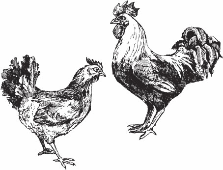 Отличительные признаки. Рулевые и маховые перья у кур имеют светло-коричневый оттенок, у петухов – почти черный. Грудь кур лососевого цвета, грива – темно-коричневая, петухи имеют серебристую гриву, кроющие перья спины красно-коричневого оттенка, живот, грудь и хвост – черного цвета. Голова средних размеров, немного округлена, клюв немного загнут, желтого цвета, гребень средних размеров листовидной формы, глаза желто-красного оттенка. Мочки ушей красные, сережки средней длины, красного цвета. Спина широкая, прямая, грудь, выпуклая, глубокая, широкая. Корпус длинный, глубокий, крылья прилегают к туловищу плотно. Кожа желтого оттенка, хвост небольшого размера, ноги неоперенные, длина средняя, цвет желтый (рис. 24).