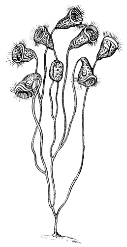 Если слегка качнуть чашку с водой, в которой находятся сувойки, то они тут же отреагируют на это постороннее воздействие. Их стебельки моментально свернутся в спираль и потянут тела инфузорий вниз. Успокоившись, сувойки расслабляют мышечные волоконца стебелька и вновь приподнимаются «колокольчиком» вверх. Ресничный аппарат сувоек развит только по верхнему краю венчика. Все остальное тело и стебелек ресничек не имеют. Да они там и не требуются. Ведь сувойки не передвигаются, а для захвата пищи им нужны только реснички, расположенные вокруг рта.