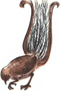 Совершенно необыкновенный хвост у самца австралийской птицы-лиры. Крайние хвостовые перья хвоста изогнуты в виде латинской буквы V и образуют настоящую лиру. Остальные хвостовые перья редко опушены и похожи не то на хвощ, не то на жиденькую елочку. Это не маленькая птичка. Длина туловища у птицы-лиры 60–70 сантиметров и примерно такой же длины хвост.