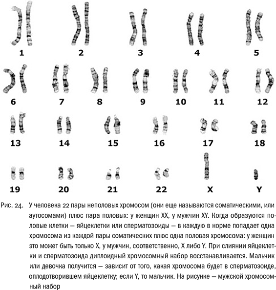 Все остальные хромосомы – 22 пары неполовых, а также Х-хромосомы у женщин – при образовании половых клеток обмениваются фрагментами, каждая со своей; этот процесс называется кроссинговером, он создает новые, потенциально выигрышные комбинации аллелей разных генов, способствует распространению полезных вариантов и позволяет избавляться от вредных. Поэтому, хотя каждый из нас получает одну хромосому от мамы, а другую от папы, мы не получаем мамину хромосому, в точности соответствующую хромосоме бабушки либо дедушки по материнской линии, – мы получаем своего рода гибрид двух маминых хромосом из одной пары. Но в клетках мужчин одна Х-хромосома и одна Y-хромосома, поэтому у них меняются участками только неполовые хромосомы. Отсюда следует, что Y-хромосома достается сыну от отца в неизменном виде, за исключением случайных мутаций, и такой же передается его сыновьям. (Ну хорошо, на самом деле у Х- и Y-хромосом есть небольшие общие области, в которых таки происходит кроссинговер, но они сравнительно невелики, и их можно не учитывать.)