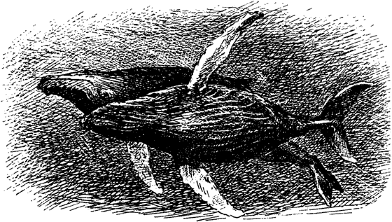 Через несколько дней, когда руль исправили, Филипп и его товарищи снова вышли в море. Около плоского рифа им встретилась группа из семи китов. Звери затеяли игру вокруг судна, терлись друг о друга и издавали отчетливо слышимые модулированные звуки.