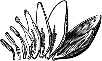 Рис. 78. Тычинки и лепестки белой кувшинки.