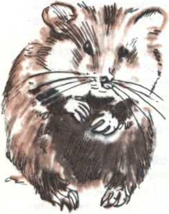 Наш обыкновенный хомяк, завидев собаку, становится на задние лапы, показывает врагу необычное темно-бурое брюхо. Одновременно он храпит, лязгает зубами и раздувает свои защечные мешки. Собака, незнакомая с хомяком, пугается и оставляет его в покое.
