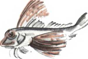 Черноморская рыба тригла, или морской петух, обычно лежит полузарывшись в песок. Отправляясь на охоту, она тихонько пробирается по дну на трех кривых жестких шипах, расположенных у основания грудных плавников. В спокойном состоянии плавники у нее плотно прижаты к туловищу, и тригла, окрашенная сверху под цвет дна, почти незаметна. Но вот появилась акула, или лаврак, и морской петух мгновенно преображается. Он распускает, как веера, свои огромные грудные плавники, окрашенные с внутренней стороны во все цвета радуги, и становится похожим на какую-то экзотическую бабочку. Пока ошеломленная акула «раздумывает», тригла забивается под камень или в гущу водорослей, складывает плавники и вновь приобретает защитную окраску.