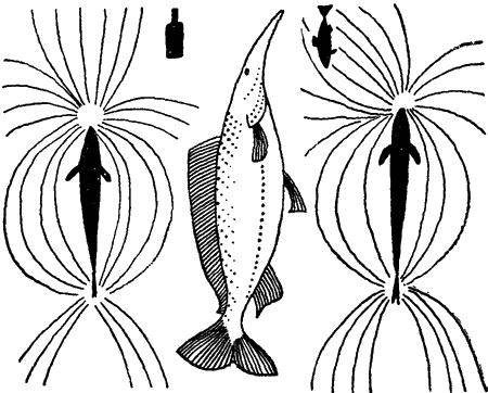 Было бы странно, если бы природа не смогла использовать это явление. Видимо, в тот период, когда на Земле появились рыбы, она увлеклась электротехникой. Она только что закончила вчерне создание мозга и периферических нервов (командно-коммуникационного органа с его сложным электрохозяйством) и теперь прикидывала, какую еще пользу можно извлечь из электричества. Нужно отдать должное, поиски не были напрасными. Во всяком случае, в жизни рыб электричество выполняет более разнообразные функции, чем у других животных.