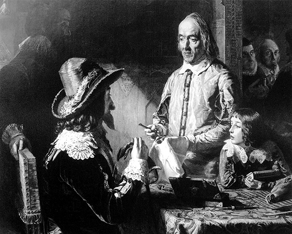 В. Гарвей демонстрирует свои опыты, доказывающие его теорию кровообращения.
