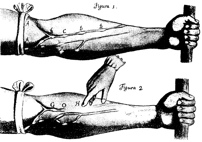 С именами двух выдающихся ученых XVI в. — сожженного инквизицией М. Сервета и Р. Коломбо — связано описание малого круга кровообращения. Но до XVII в. вопрос о движении крови в человеческом теле оставался неясным; общепризнанными были воззрения Галена. Некоторые правильные наблюдения и высказывания Чезальпино и других не привели к пониманию процесса кровообращения. Понять его сумел лишь знаменитый английский ученый Вильям Гарвей.