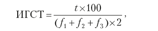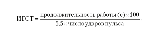 Более точно можно рассчитать ИГСТ, если пульс считать 3 раза – в первые 30 секунд 2-й, 3-й и 4-й минут восстановления; в этом случае ИГСТ вычисляют по формуле: