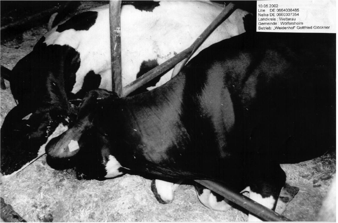 Описывая этот факт, У. Энгдаль написал: «Глокнер, фермер с университетским образованием, рассказал австрийскому журналисту, что он был потрясен, когда обнаружил своих коров в липко-белых экскрементах и испытывающих сильную диарею. Их молоко содержало кровь — что-то неслыханное при лактации. Некоторые коровы внезапно прекратили давать молоко. Затем между маем и августом 2001 года один за другим умерли пять телят — чрезвычайно тревожный случай. Глокнер в конечном итоге потерял почти все свое стадо в 70 коров». На конференции, организованной Центром российского бизнеса в Европе в июне 2009 г., Глокнер рассказал о болезни и смерти животных, показал российским специалистам фотографии с дегенеративными изменениями в мышцах, полуразрушенным выменем у коров (рис. 1, 2).