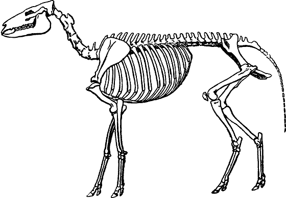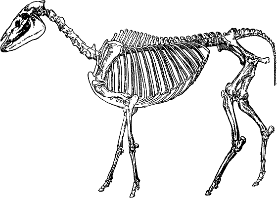 Стопа лошади начинается с двух костей — таранной и пяточной (кости предплюсны), а кончается тремя костями, соответствующими трем костям (фалангам) нашего пальца. Между первой из этих трех костей и таранной костью находится длинная кость — кость плюсны. Кости кисти (передняя нога): внизу три косточки пальца, затем длинная кость пястья (соответствует плюсне задней ноги), а затем — несколько костей запястья (соответствуют предплюсне задней ноги).