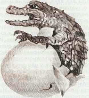 Откопав шустрых и бестолковых крокодильчиков, она, как утка, ведет их к воде. Некоторые ученые предполагают, что крокодилиха заранее подбирает подходящее местечко на мелководье, где достаточно густая растительность и где крокодильчики, оставаясь в течение шести недель под ее бдительным оком, будут в относительной безопасности. Правда, это не мешает и самой мамаше иногда сожрать чужих, случайно подвернувшихся детишек, а самцы — так те только и ищут для этого удобного момента, и нередко даже нападают на охраняющую малышей самку. Считают, что такого рода каннибализм объясняется не жадностью (или кровожадностью) крокодилов, а является механизмом регуляции численности этих рептилий: чем больше в каком-то месте крокодилов, тем чаще проявляется каннибализм.