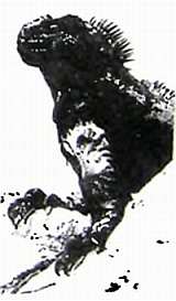 «Морской Амблиринхус на острове Альбемарль был крупнее, чем на других островах», — писал Дарвин об этой тупорылой ящерице из рода Игуан (изображение справа).