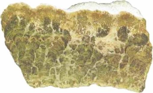 Фото 19. Строматолит. Следы жизнедеятельности бактерий, образовывавших слоистые «ковры» на мелководье. Отшлифованный спил. Пермский период. Приуралье.