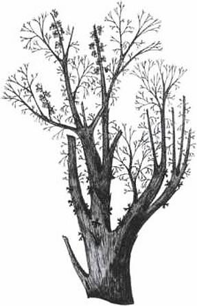 Рис. 7. Cla doxylon (кладоксилон). Средний девон (по Крейзелю и Вейланду).