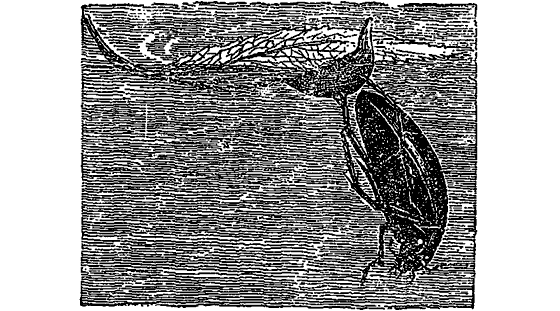 Личинка покидает воду и ползет окукливаться на сушу. Сухопутная куколка — наследие далеких сухопутных предков у водяного жука-плавунца.