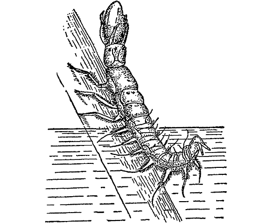 Завидя добычу, личинка бросается на нее. Лишь на миг охватывает она ее ногами: тотчас же в добычу впиваются челюсти личинки. А они таковы, что из них не вырвешься.