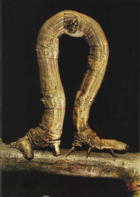 Гусеницы бабочки пяденицы двигаются по веткам, петлеобразно изгибая тело. Они превосходно маскируются, так как по форме и по цвету они отлично сочетаются с теми ветками, на которых находятся.