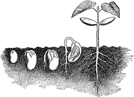 Но вот корешок углубился в почву, а листочки на стебельке выбрались на поверхность, к солнечным лучам. Теперь они уже в состоянии добывать пищу сами. Готовые запасы им больше не нужны. Теперь растению нужны солнечный свет, тепло да хорошая почва.