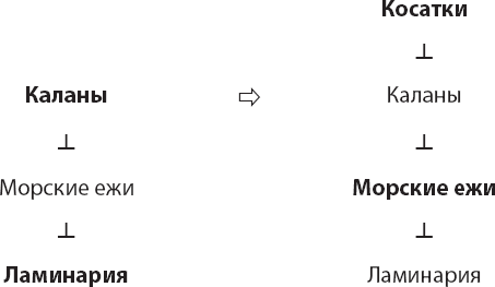 «Джим, вы неправильно формулируете вопрос, – сказал ему Пэйн, – вам нужно рассмотреть три трофических уровня: каланы питаются морскими ежами, морские ежи питаются ламинарией».