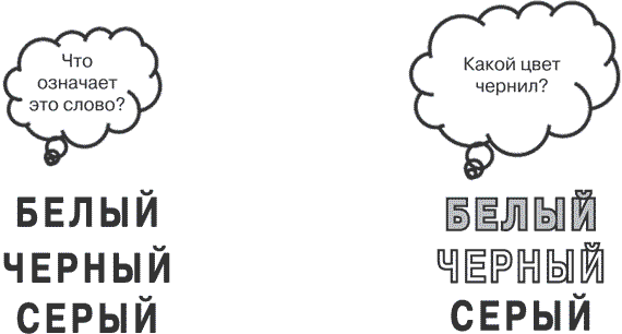 Рис. 14. При прохождении теста Струпа не так-то просто определить цвет чернил при условии, что на вас влияет смысл написанного слова