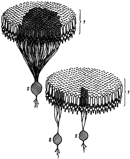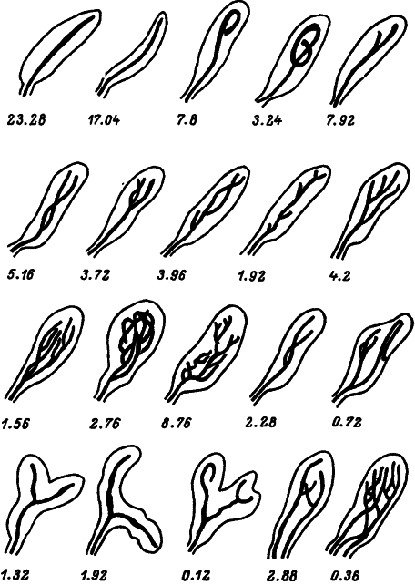 Цифры — процент встречаемости. Ясно, что существует множество разновидностей рецепторных структур. Есть точка зрения, согласно которой уровни развития и сложности структур образуют последовательность от свободных нервных окончаний к специализированному рецептору — тельцу Пачини, показанному на рис. 4.