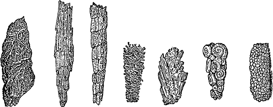 Домики ручейников (в натуральную величину).