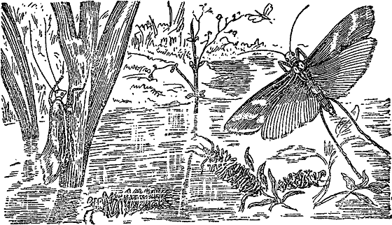 Не у всякого насекомого увидишь ползающую куколку. У ручейника она даже плавает. По осоке или камышу, по любому предмету, торчащему из воды, она всползает над водой. Там, в воздухе, из нее выйдет ручейник.