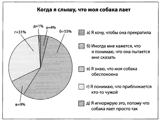 Насколько хорошо мы понимаем то, что пытаются нам сообщить собаки? Ученые предлагали группе людей послушать несколько записей собачьего лая. Большинство испытуемых, независимо от того, была ли у них собака, могли правильно определить по лаю, одна ли собака, приближается ли к ней чужак, играет она или проявляет агрессию. В отличие от псов, люди не слишком хорошо отличали лай разных собак. Единственный вариант, при котором человек вполне справлялся с этой задачей, имел место в случае с «лаем на незнакомца». Именно в такой ситуации хозяину собаки наиболее важно понимать значение лая, так как незнакомец может быть опасен.