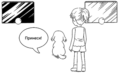 Вдохновившись этими примерами, мы решили провести еще один простой эксперимент. Я бросал Орео мячик, а когда пес возвращался с игрушкой в зубах, либо смотрел прямо на него, либо поворачивался к нему спиной. Орео почти всегда оставлял мячик передо мной — там, где я его замечу. Было и несколько исключений, когда Орео так не делал, а легонько кидал мячом мне в спину и гавкал.