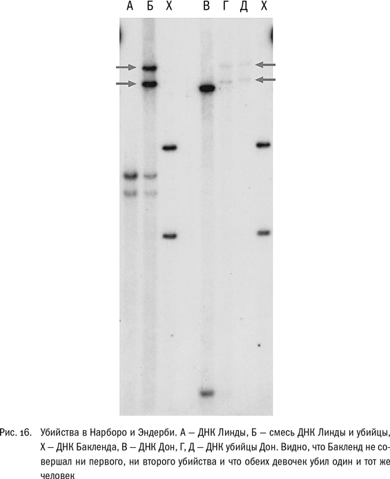 Инновация была использована, когда Джеффриса пригласили поучаствовать в расследовании двойного убийства, с которого мы начали свой рассказ. Итак, 21 ноября 1983 г. в городе Нарборо 15-летняя Линда Манн пошла в гости и не вернулась домой. Ее нашли изнасилованной и задушенной у тропинки в малолюдном месте. Криминалисты взяли образец спермы, по нему определили группу крови и ферментный профиль преступника. Эти данные подходили 10 % лиц мужского пола в популяции. Дело осталось открытым.