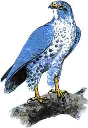 Свое имя сапсан (семейство соколиных) получил благодаря калмыцкому языку. У сапсана относительно короткий хвост и короткие ноги. В оперении сверху преобладает сероватый цвет с более темными треугольными пятнами. Нижняя часть тела и брюхо — желтовато-белые. Длина птицы — до полуметра, а размах крыльев — около 1 м. Другое название сапсана — странствующий сокол, и он вполне оправдывает это название, поскольку гнездится и на Дальнем Востоке, и на Крайнем Севере, и в Средней Азии. Сапсаны питаются птицами, нападая на них в полете. Сапсаны обычно занимают чужие гнезда. В кладке — до 4 яиц. Птенцов выкармливает самка, размягчая мясо в своем зобу.