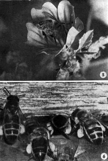 6. МАССОВЫЙ СБОР ПЫЛЬЦЫ. НА ЗАДНИХ НОЖКАХ ПЧЕЛ-СБОРЩИЦ ВИДНЫ ШАРИКИ ПЫЛЬЦЫ — ОБНОЖКА.