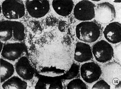 14. МАТОЧНИК СРЕДИ ЯЧЕЕК ДЛЯ РАБОЧИХ ПЧЕЛ.