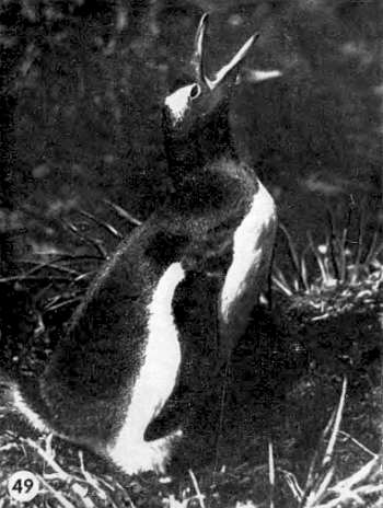 49. САМКА ПИНГВИНА PYGOSCELIS PAPUA, НАСИЖИВАЮЩАЯ ЯЙЦО, ЗОВЕТ САМЦА, ЧТОБЫ ОН СМЕНИЛ ЕЕ.