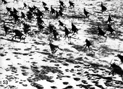 53. НЕСУЩЕЕСЯ ВСКАЧЬ СТАДО ЧЕРНЫХ АНТИЛОП В ЮЖНОЙ РОДЕЗИИ.